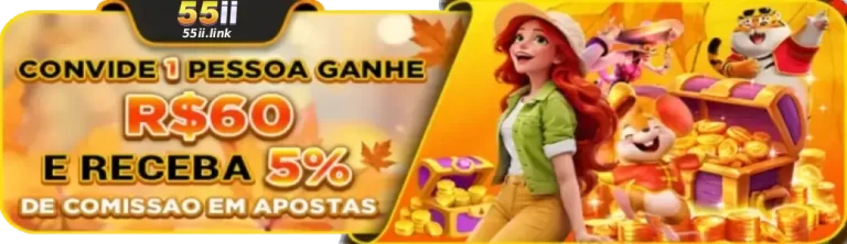 A 55II transformou o sistema de indicações em uma verdadeira fonte de renda. Atualmente, ao convidar apenas uma pessoa para a plataforma, você recebe um bônus direto de R$ 60. Mas o diferencial estratégico está no longo prazo: além do valor fixo, você passa a receber 5% de comissão sobre as movimentações, criando um fluxo de ganho passivo.